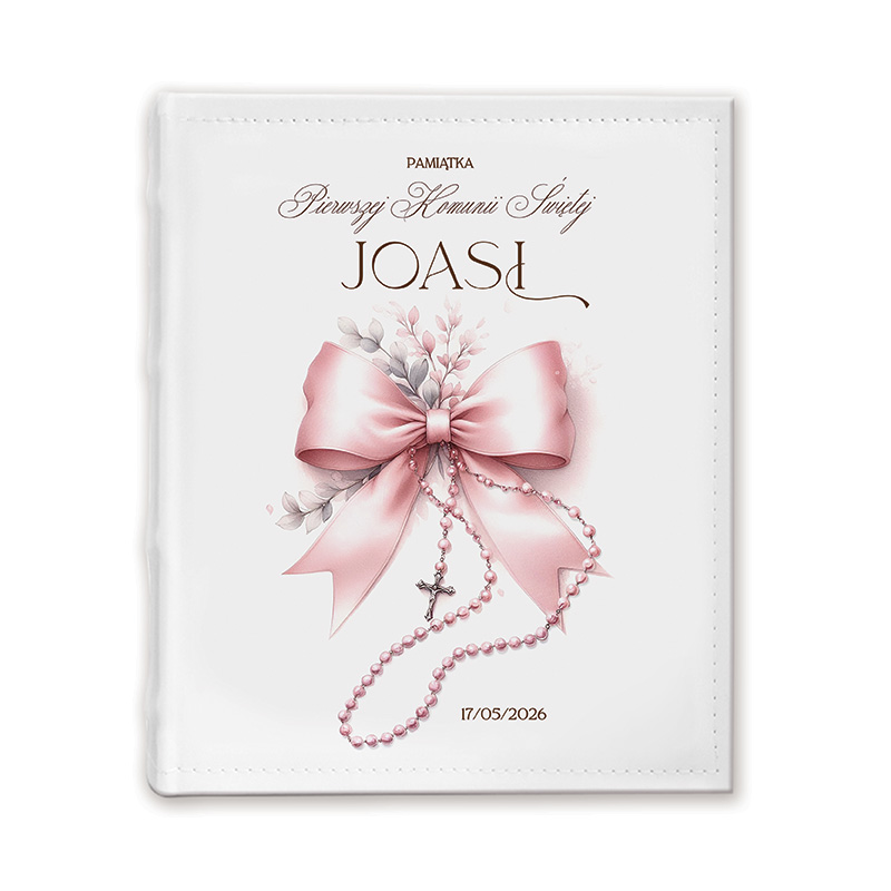 Album komunijny dla dziewczynki z różową kokardą to praktyczne miejsce na zdjęcia i symbol świadomego kroku w wierze. To idealny prezent od chrzestnych, dziadków, rodziców czy bliskich przyjaciół rodziny. Album pięknie wygląda na półce lub rodzinnej biblioteczce. Elegancki album komunijny z różową kokardą to wyjątkowa pamiątka dla dziewczynki z okazji Pierwszej Komunii Świętej.