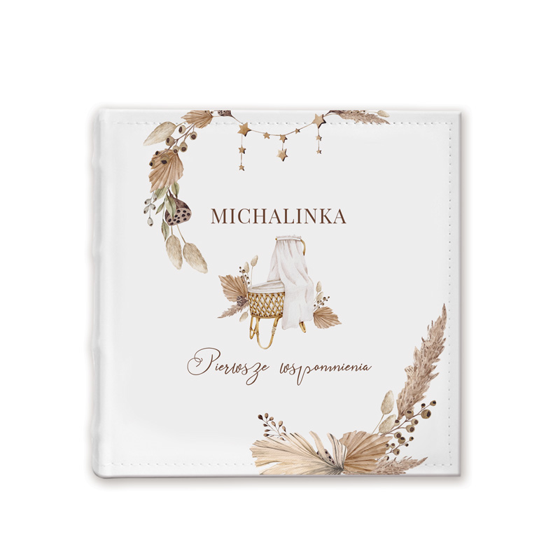 Wyjątkowy album kieszonkowy na zdjęcia „Pierwsze wspomnienia” w stylu boho to idealny prezent na narodziny dziecka. Personalizowana okładka z imieniem maluszka sprawia, że jest to pamiątka jedyna w swoim rodzaju.
