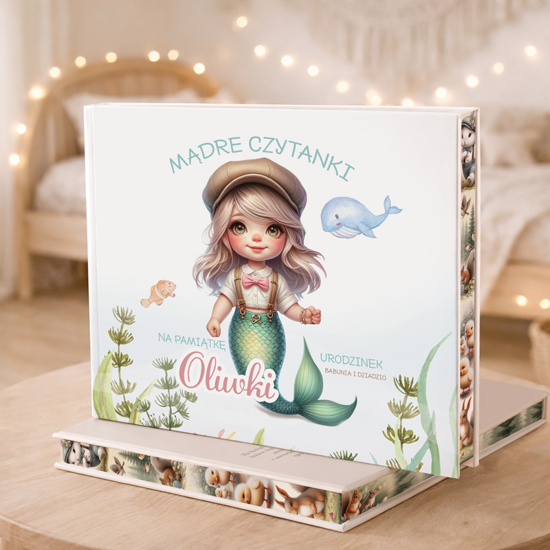 Motyw syrenki w delikatnych pastelowych kolorach oraz możliwość personalizacji nadają zestawowi wyjątkowy charakter. Książka zachęca do wspólnego czytania, tworząc okazję do rozmów na ważne tematy i budowania bliskości z dzieckiem. Zakładka, jako praktyczny i piękny dodatek, dopełnia zestaw, który z pewnością zostanie doceniony przez każdą dziewczynkę i jej rodziców. Edukacyjne bajki i rymowane wierszyki z zakładką to więcej niż tylko książka – to prezent, który łączy naukę, zabawę i niezapomniane chwile spędzone razem.