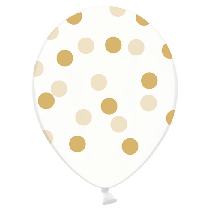 BALONY 30cm Kropki Złote Crystal Clear 6szt