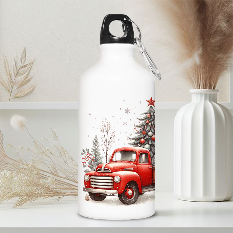 Świąteczny bidon z grafiką retro auta i choinki to idealny prezent na Mikołajki. Praktyczny i lekki bidon dla dziecka na wodę do szkoły i przedszkola.