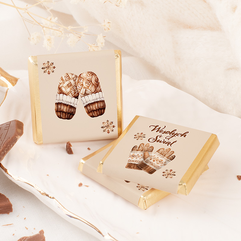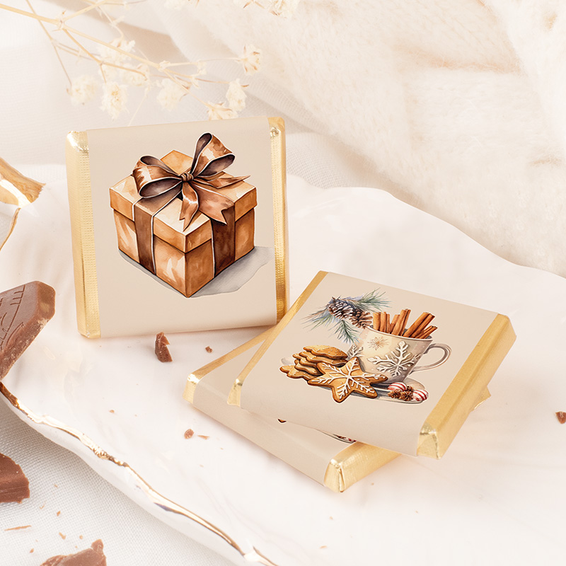 - Czekoladka ok. 3,5 cm x 3,5 m, grube na ok. 0,4 cm, masa 5g.