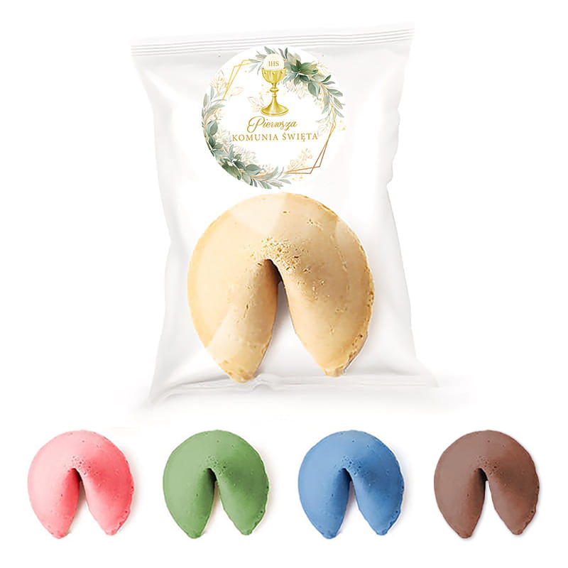 Spraw, by Twoja uroczystość Pierwszej Komunii Świętej była jeszcze bardziej niezapomniana. Wybierz zestaw 10 sztuk ciasteczek z wróżbą i podziękuj gościom w wyjątkowy sposób – pełen smaku, elegancji i pozytywnej energii!