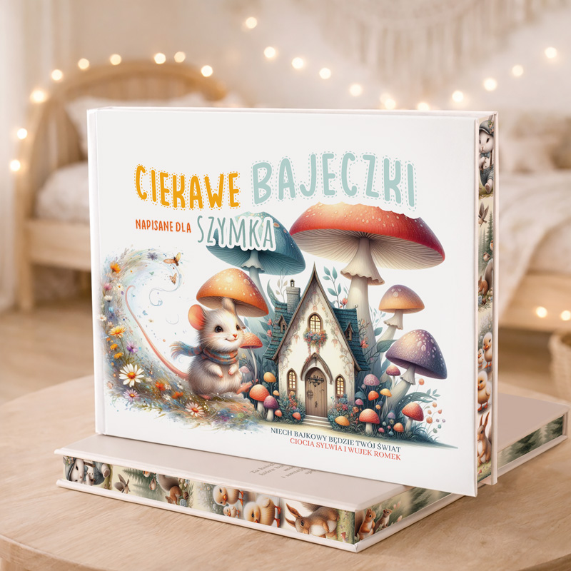 Personalizowana książka z bajkami i wierszykami dla dzieci z imieniem dziecka na okładce. Piękne ilustracje, edukacyjne treści i proste rymy uczą przez zabawę. Idealny prezent, który rozwija wyobraźnię i buduje miłość do czytania.