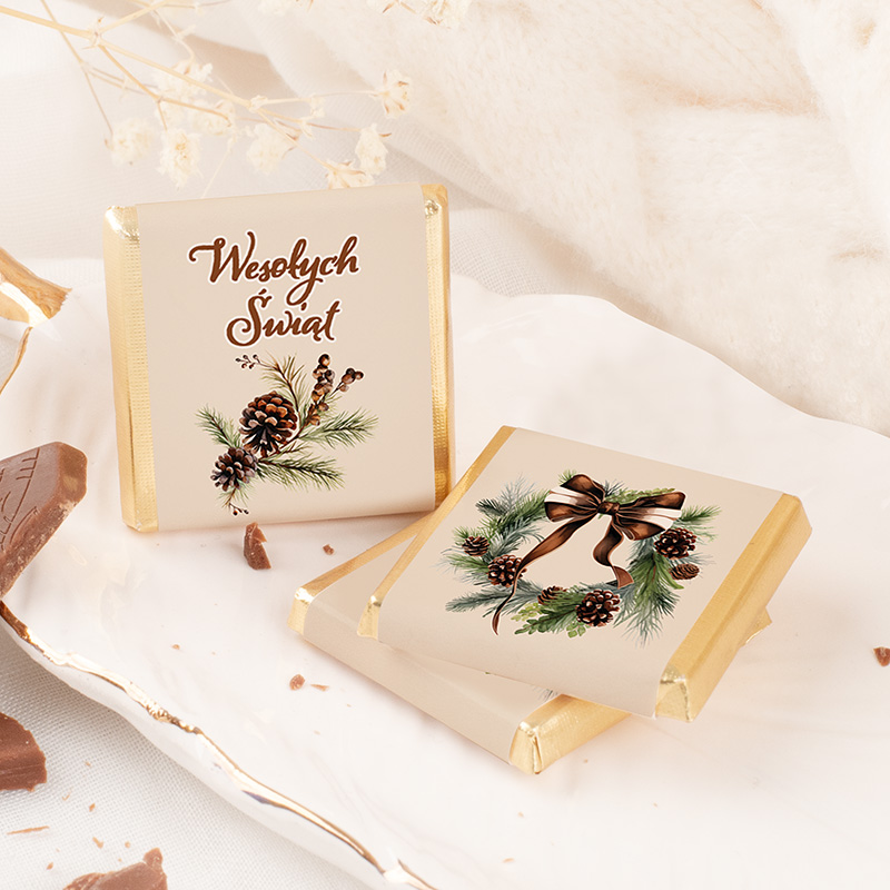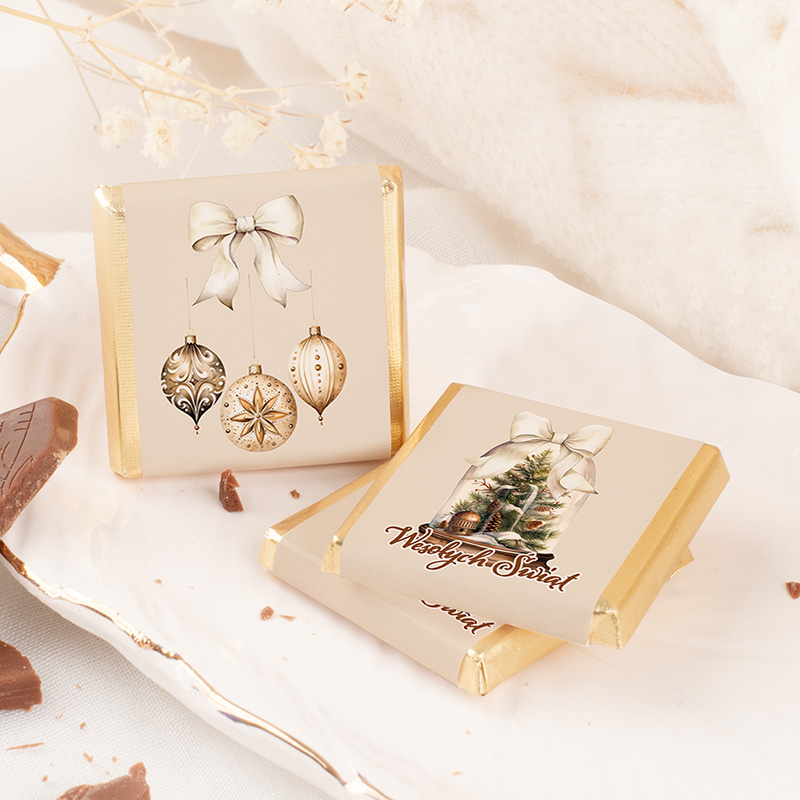 Słodka czekoladka w świątecznej oprawie to drobny, ale bardzo efektowny dodatek, który wprowadza ciepły, bożonarodzeniowy klimat. Sprawdzi się jako samodzielny upominek lub część większego zestawu prezentowego.