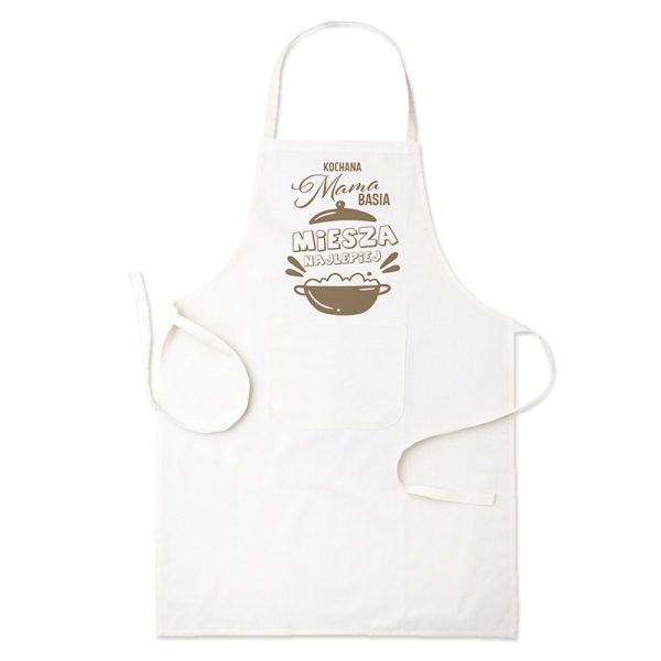Szukasz prezentu dla mamy, który będzie jednocześnie praktyczny i pełen uroku? Ten fartuch kuchenny z zabawnym napisem i personalizowanym imieniem sprawi, że każda mama poczuje się w kuchni naprawdę wyjątkowo. To idealny upominek na Dzień Mamy dla królowej domowej kuchni.