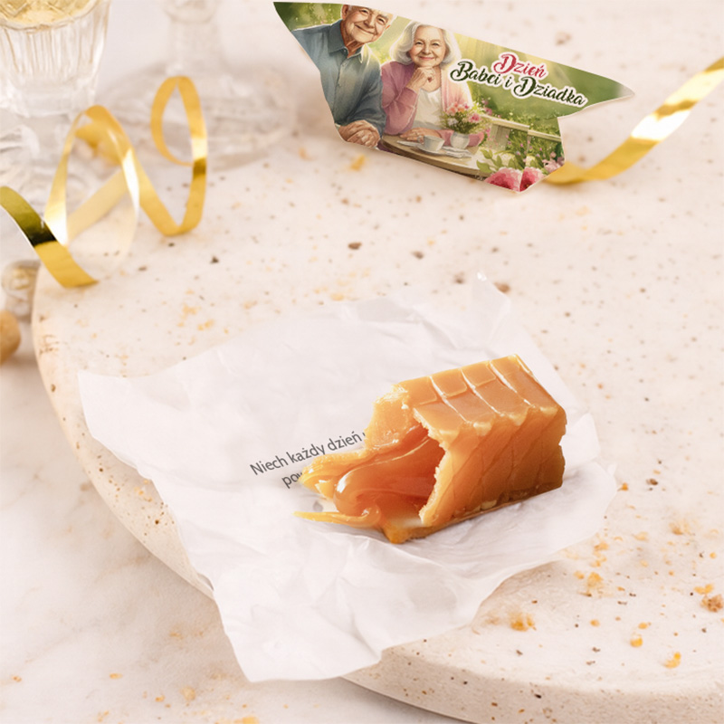 Kilogram klasycznych krówek z ukrytymi życzeniami to sprawdzony wybór na styczeń. Cukierki zapakowane są w kolorowe papierki z ilustracją Babci i Dziadka oraz napisem wskazującym na okazję. Wewnątrz każdej sztuki znajduje się pozytywna sentencja, która uprzyjemni dzień każdemu seniorowi. To gotowy, uniwersalny i estetyczny słodki prezent na Dzień Babci i Dziadka.