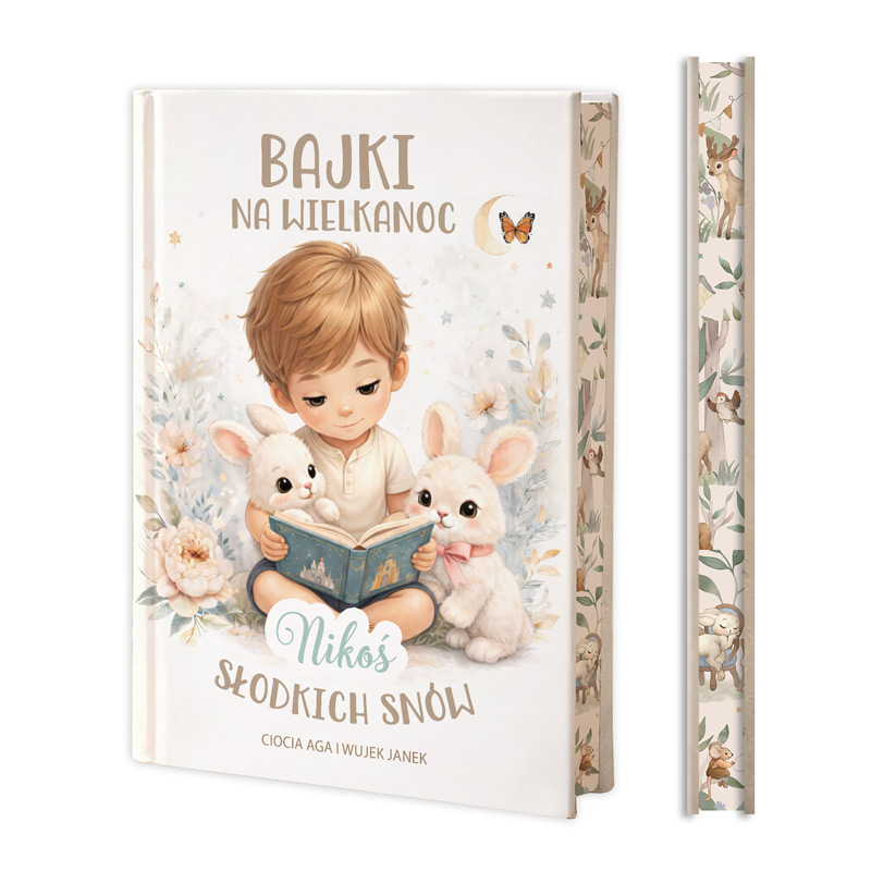 Książka z bajkami na Wielkanoc to wyjątkowy prezent dla chłopca, który przenosi dziecko do świata pięknych i pełnych fantazji opowieści. Imię dziecka oraz podpis na okładce podlegają personalizacji, dzięki czemu książka staje się osobistą pamiątką wielkanocnego prezentu. Eleganckie wydanie z barwionymi, kolorowymi brzegami oraz aż 40 bajek w środku sprawia, że to upominek, do którego dziecko będzie chętnie wracać każdego wieczoru.