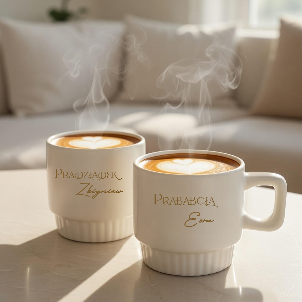 Elegancki kubek ryflowany z personalizacją to wyjątkowy prezent dla prababci i pradziadka. Idealny na Dzień Babci i Dziadka, urodziny lub święta.
