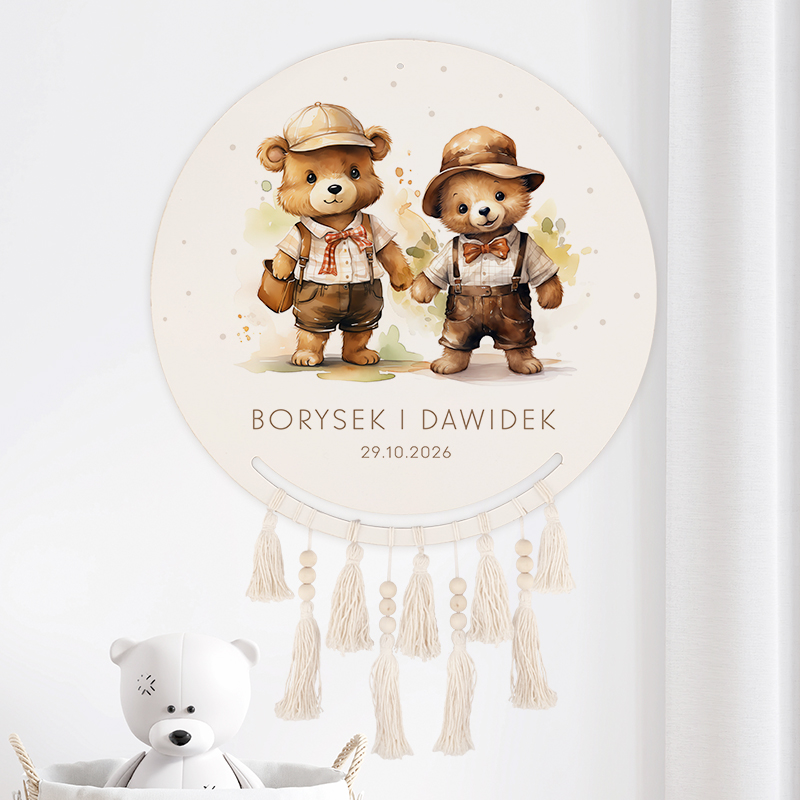 Łapacz snów z misiami to piękna i funkcjonalna dekoracja, która doda magii każdemu pokoju bliźniaków i zadba o ich spokojny sen.