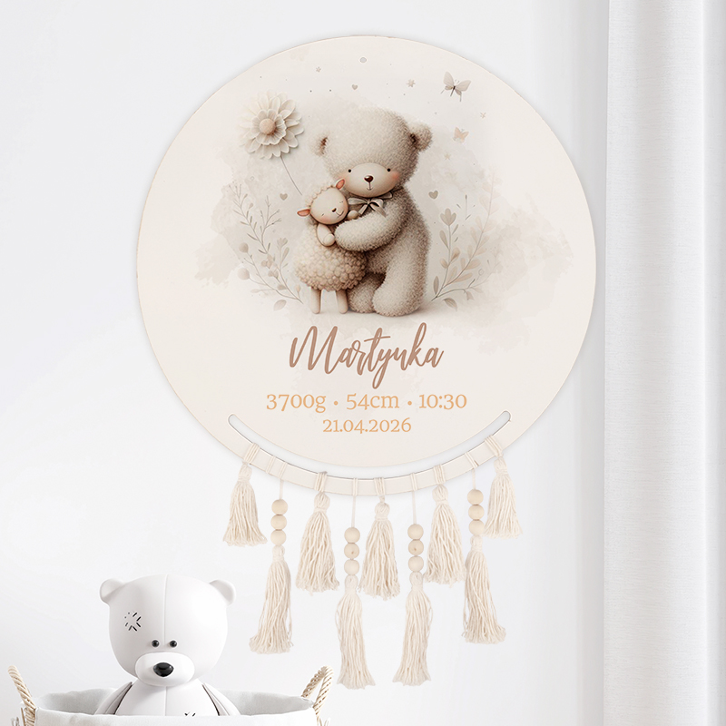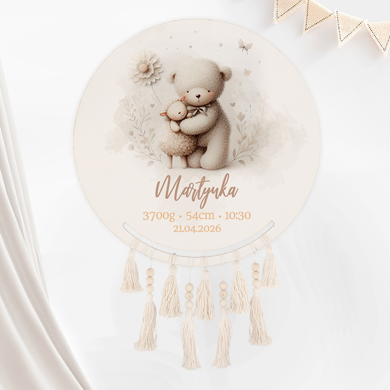 ŁAPACZ snów metryczka dekoracja ścienna Miś i Owieczka