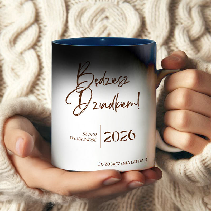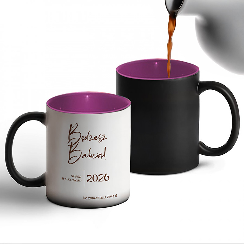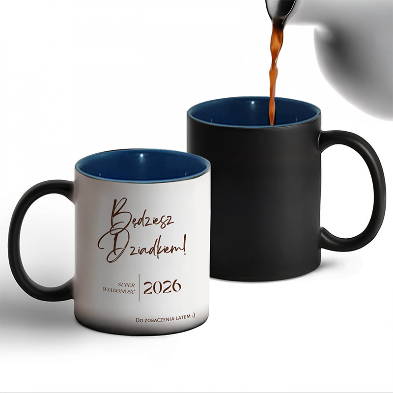 Zaskocz bliskich w najpiękniejszy możliwy sposób i przekaż radosną wiadomość za pomocą wyjątkowego, personalizowanego kubka, który zmienia swój wygląd pod wpływem ciepła.