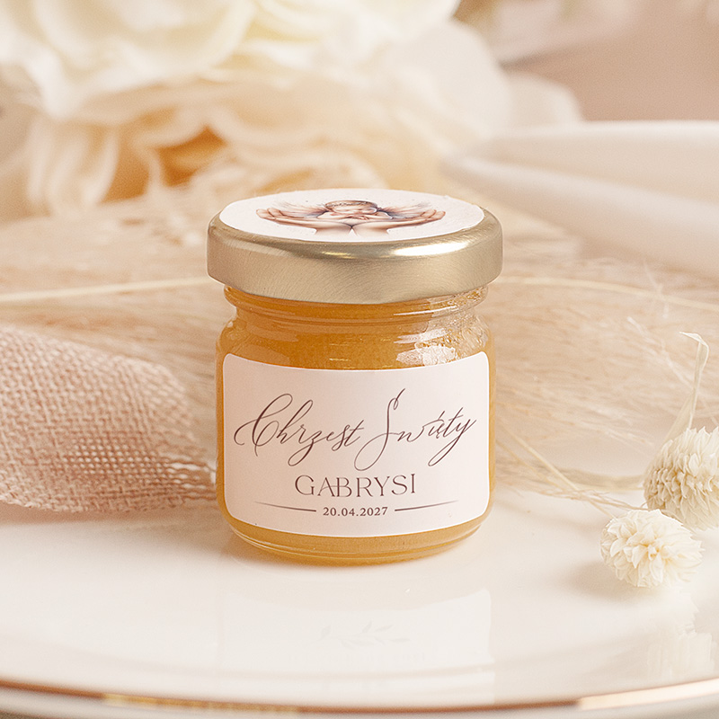 Ten produkt łączy w sobie funkcjonalność i symbolikę. Jednocześnie jest to praktyczne podziękowanie dla gości na chrzcie, które każdy może zabrać ze sobą i wykorzystać, a przy okazji przypomnieć sobie ciepło rodzinnego spotkania. Miód sprawdzi się idealnie jako dodatek do prezentowych zestawów lub jako samodzielny upominek ustawiony przy nakryciach. Goście z pewnością docenią tak praktyczny upominek, który będą mogli wykorzystać jako dodatek do ulubionej herbaty.