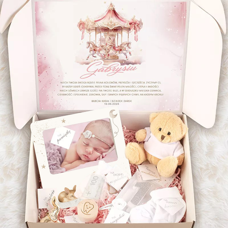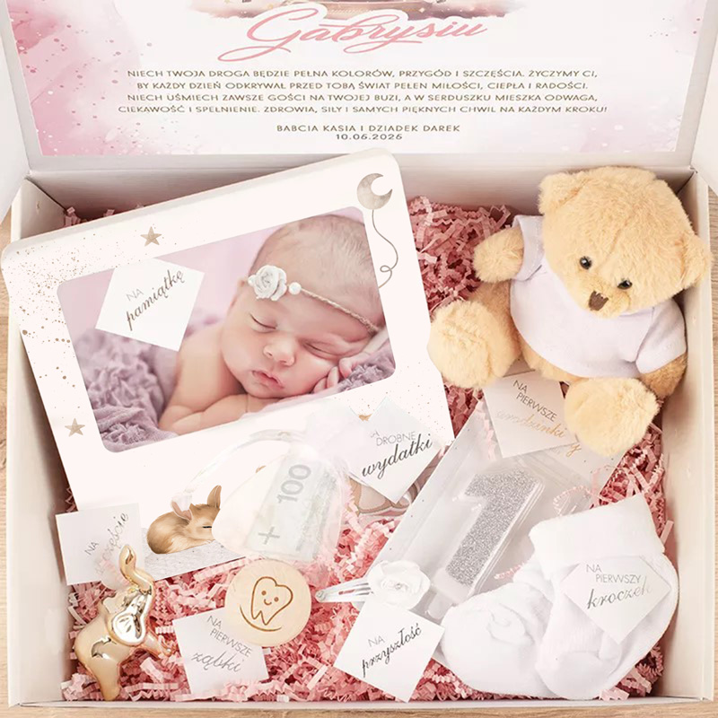 Doskonały sposób, aby uczcić narodziny dziewczynki, jej pierwsze urodziny lub chrzciny. Każdy element tego zestawu został starannie dobrany, by podkreślić wyjątkowość i urok tej niezapomnianej chwili w życiu maluszka i jego rodziny. To prezent pełen symboliki i miłości, który na długo pozostanie w sercach obdarowanych.