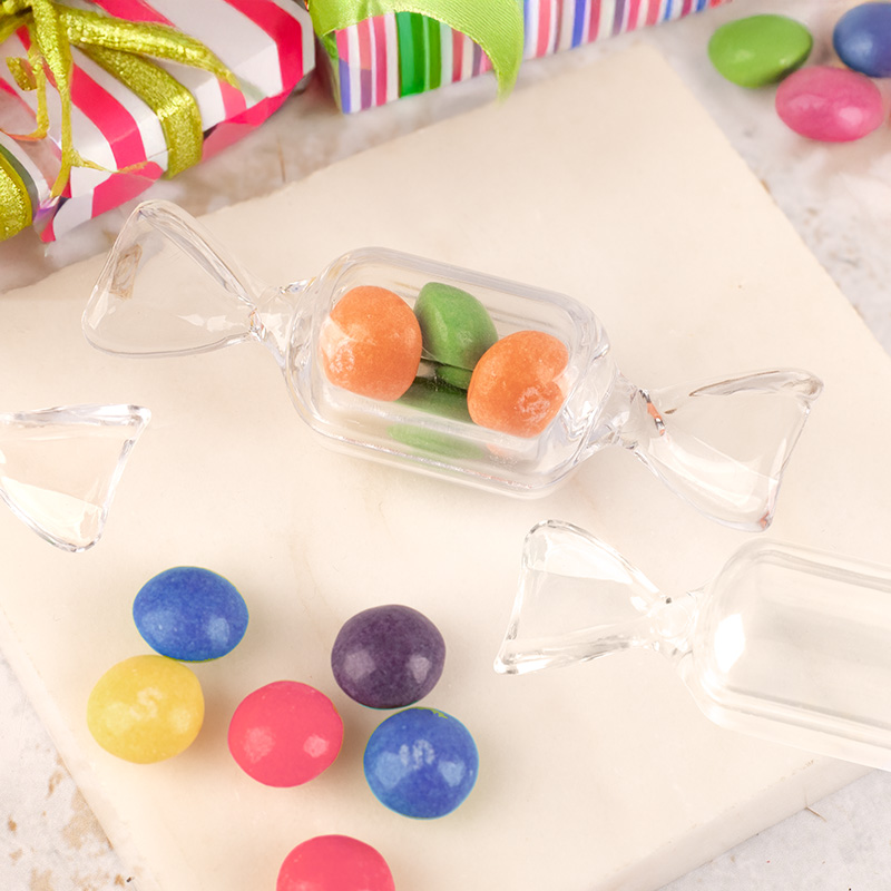 Przezroczyste plastikowe cukierki do napełnienia – oryginalne dekoracje stołu i słodki upominek w jednym. Idealne na urodziny, baby shower czy wesele.