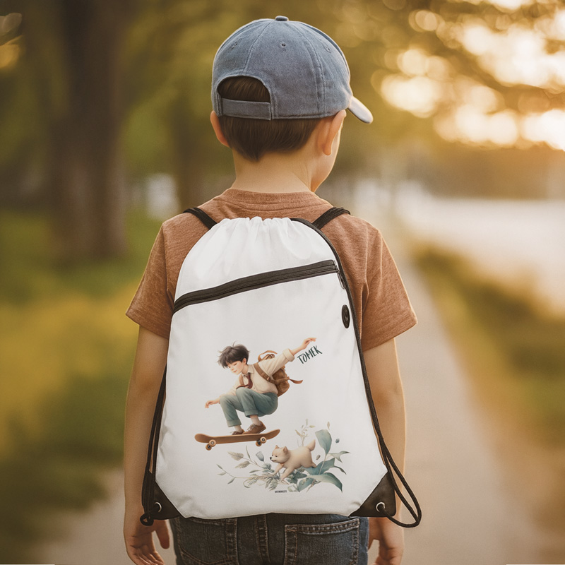 Worek jest odporny na uszkodzenia i jest łatwy w czyszczeniu, sprawdzi się w codziennym użytkowaniu oraz podczas przygód w skateparku. Możliwość personalizacji imieniem dodaje workowi osobistego charakteru, czyniąc go niezapomnianym upominkiem na każdą okazję.