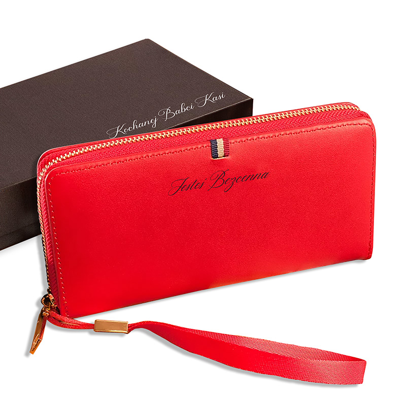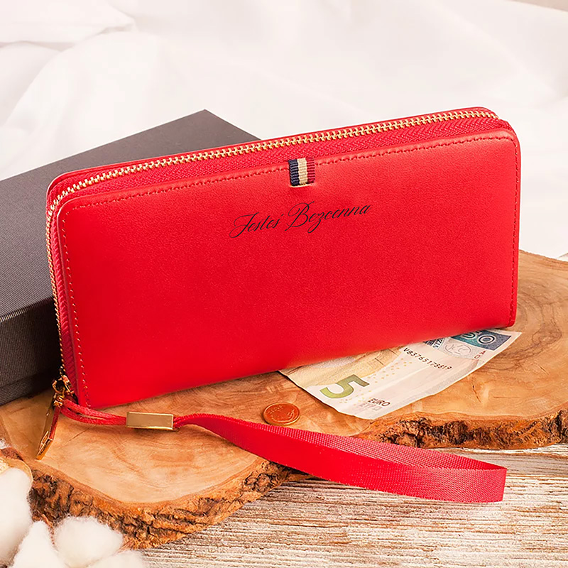 Elegancki portfel damski w czerwonym kolorze z napisem „Jesteś Bezcenną” to wyjątkowy prezent. Doskonały na Dzień Babci, urodziny lub święta. Zapakowany w eleganckie pudełko, gotowy do wręczenia.