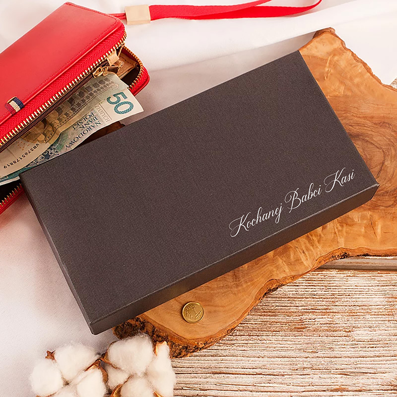 Skórzany, damski portfel w pudełku z personalizacją to elegancki prezent – idealny upominek na Dzień Babci.