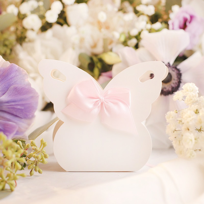 Delikatne pudełeczka w kształcie motylków to wyjątkowy sposób na podziękowanie gościom podczas ważnych uroczystości. Elegancki design i łatwy system składania sprawiają, że są praktycznym i stylowym dodatkiem na chrzest, urodziny czy komunię.