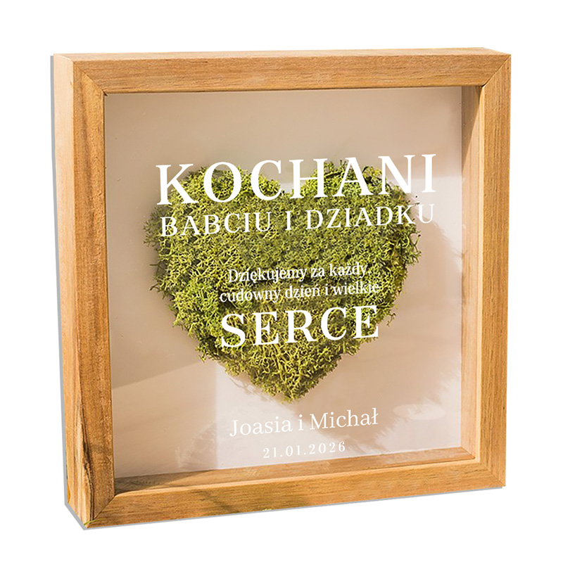 RAMKA Przestrzenna Serce z Mchu Podziękowanie dla Dziadków