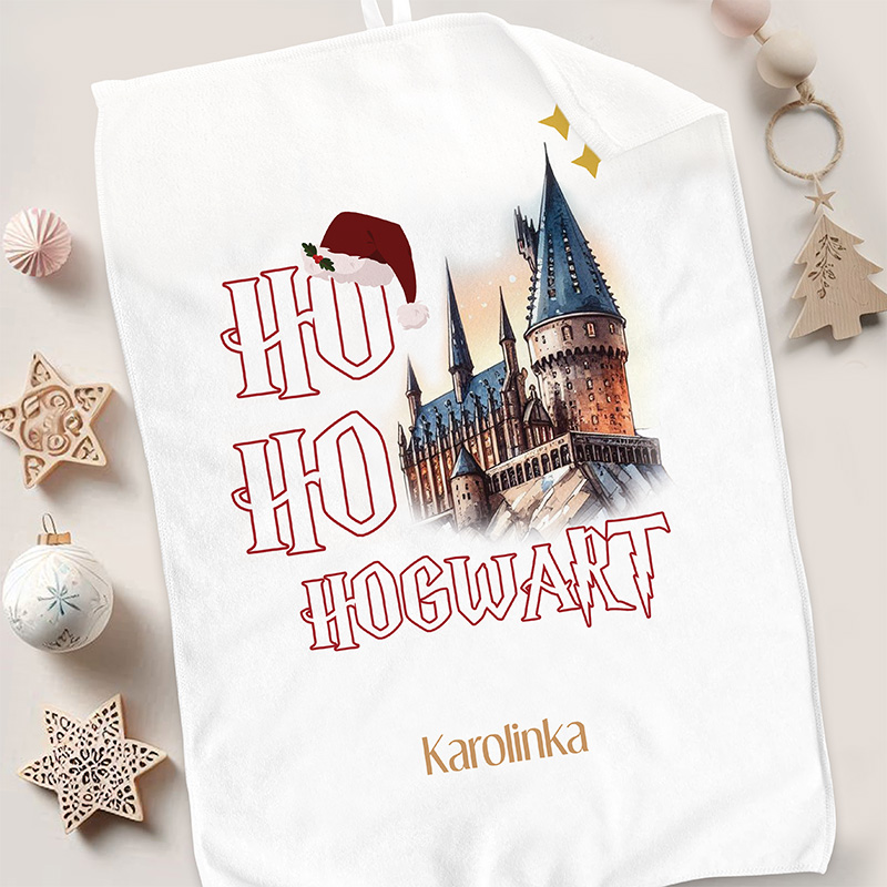 Święta to czas, w którym warto podarować coś wyjątkowego i osobistego – coś, co będzie codziennie przypominać o ulubionym świecie czarów. Personalizowany ręcznik z motywem świątecznym i Harrym Potterem idealnie wpisuje się w tę ideę. Nadruk z zamkiem Hogwart i napisem „Ho Ho Hogwart”, ozdobionym świąteczną czapką i gwiazdkami, wprowadza bożonarodzeniowy klimat i wywołuje uśmiech od pierwszego spojrzenia. Dodanie imienia właściciela sprawia, że ręcznik nabiera indywidualnego charakteru – to magiczny prezent na święta dla fana Harry’ego Pottera, który na długo zapadnie w pamięć.