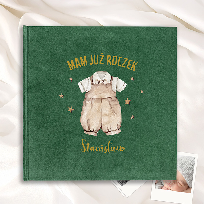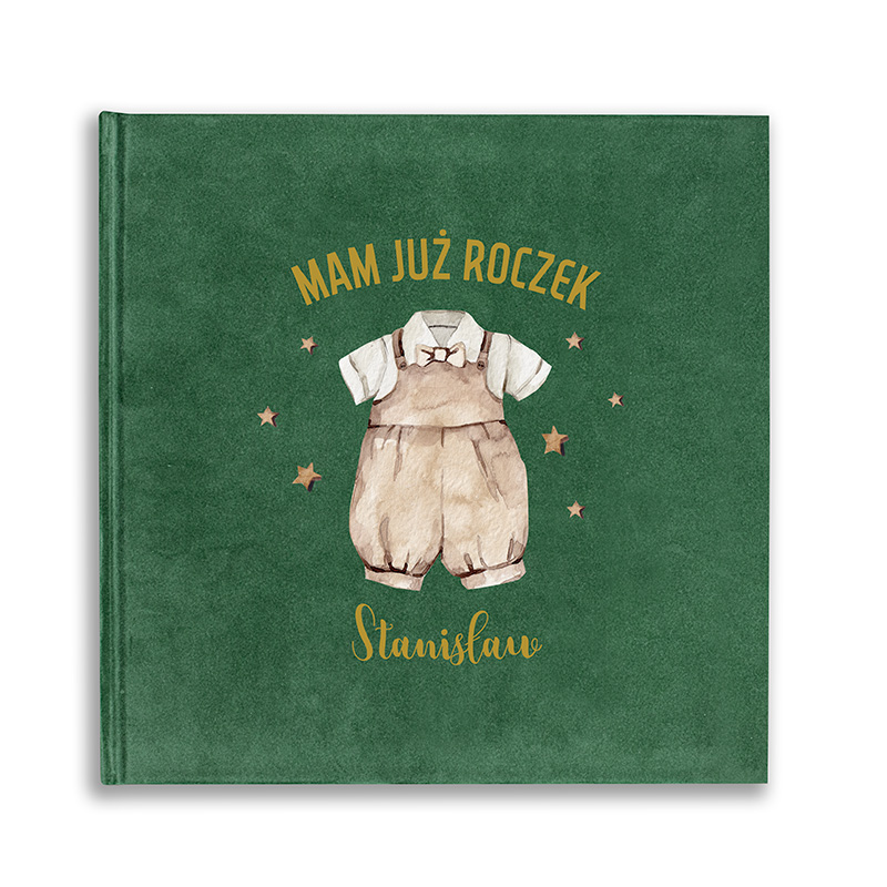 Welurowa księga na roczek dla chłopca w różnych wariantach kolorystycznych. Dzięki personalizacji z imieniem dziecka jest wyjątkowym prezentem na pierwsze urodziny.