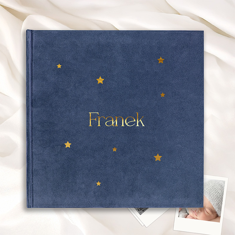 Personalizowany welurowy album na zdjęcia to elegancka pamiątka, która pozwoli zachować najpiękniejsze chwile z życia dziecka w wyjątkowej formie. Okładka dostępna w kilku wersjach kolorystycznych zdobiona jest złoconym napisem z imieniem dziecka oraz subtelnymi gwiazdkami, co nadaje całości niepowtarzalnego charakteru.