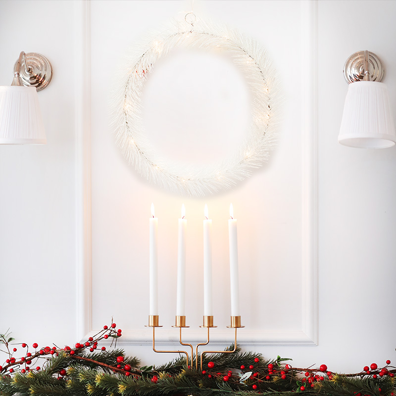 Wianek świąteczny z oświetleniem LED to elegancka dekoracja, która rozświetli każde wnętrze. Subtelne światło i biały kolor gałązek nadają wnętrzu przytulnego bożonarodzeniowego charakteru.