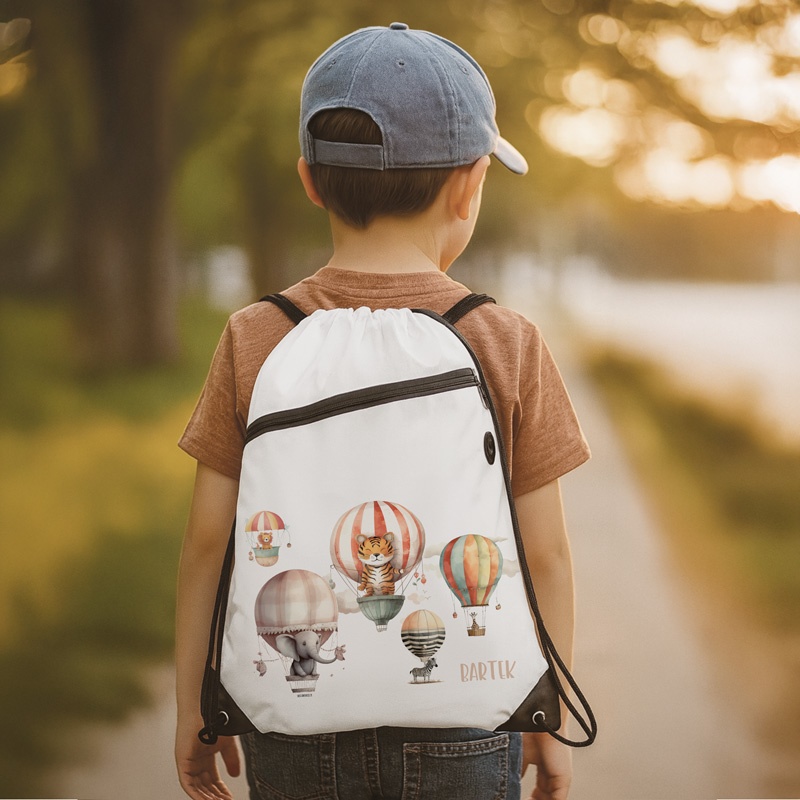 Worek z imieniem na buty to praktyczny i estetyczny dodatek do przedszkolnej wyprawki. Jego uroczy design z balonami i zwierzętami, w połączeniu z możliwością personalizacji, czyni go niepowtarzalnym.