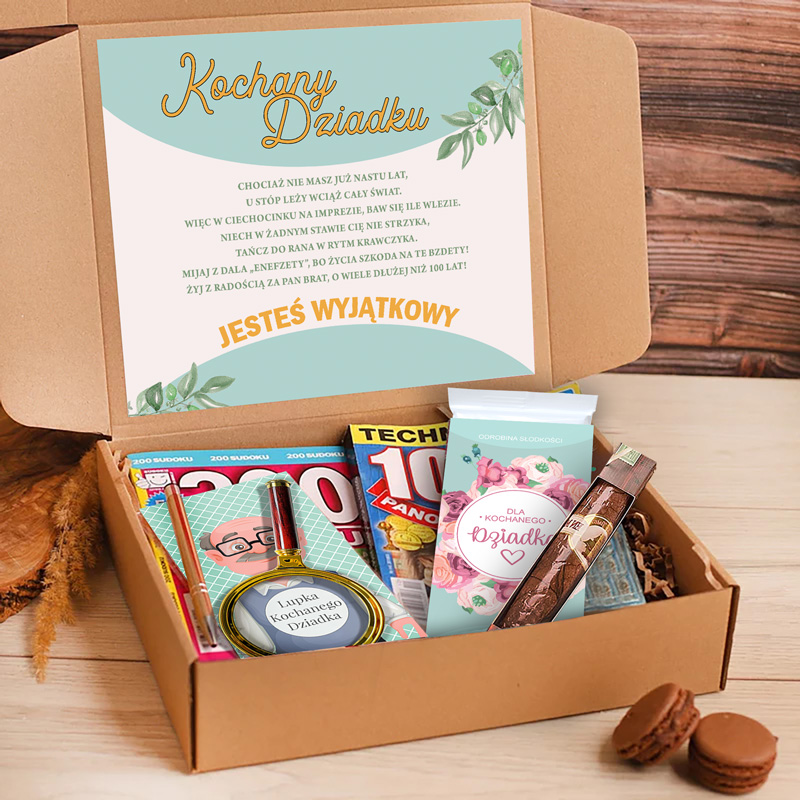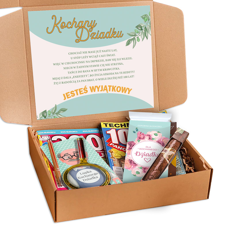 Czy zdajesz sobie sprawę, że zbliżający się Dzień Dziadka to idealna okazja, by podarować mu coś wyjątkowego? Dziadek, który zawsze był przy Tobie, zabierał na spacery i wymyślał najlepsze zabawy, zasługuje na coś specjalnego. Z myślą o nim i innych seniorach przygotowaliśmy ten kompleksowy zestaw prezentowy. Zawiera on wszystko, czego potrzebujesz, by sprawić radość ukochanemu dziadkowi.