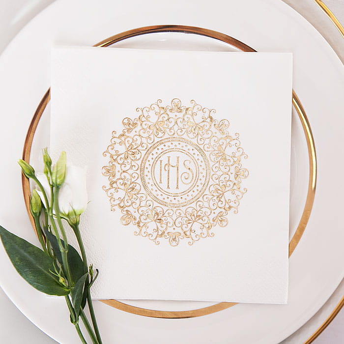 • Wzór na serwetkach połyskuje w złotym kolorze.