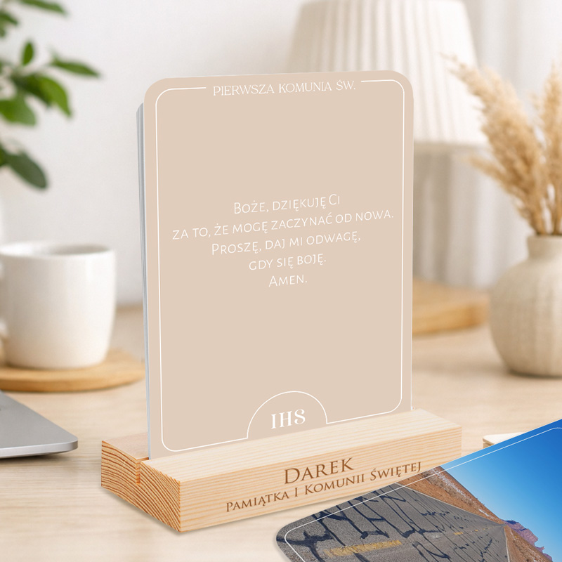 Pierwsza Komunia Święta to moment, który warto upamiętnić prezentem niosącym głębokie znaczenie. Zestaw kart modlitewnych z personalizowaną podstawką to harmonijne połączenie estetycznej formy i duchowej treści, stworzone z myślą o codziennej modlitwie i refleksji dziecka.