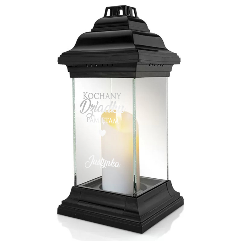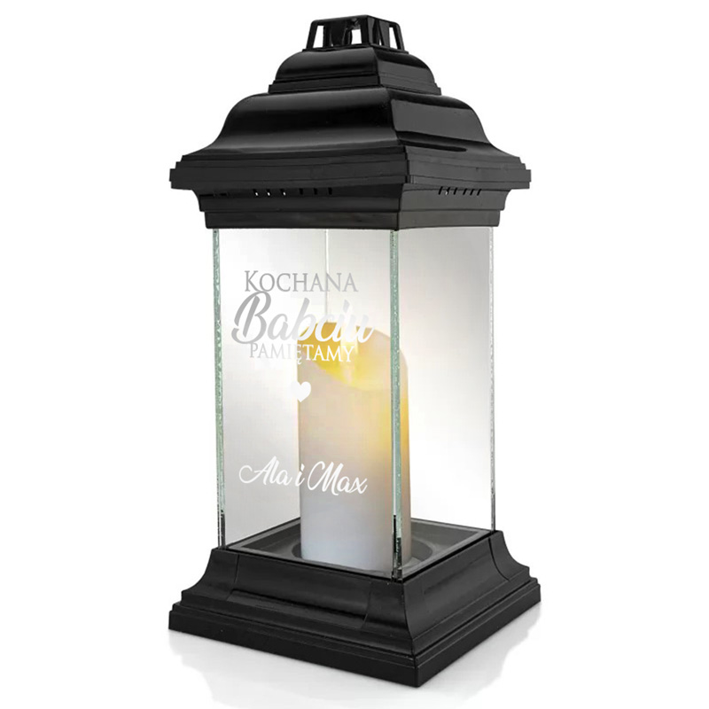 Elegancki znicz personalizowany dla dziadków. Czarne wykończenie połączone z przezroczystymi ściankami sprawia, że znicz prezentuje się estetycznie i pasuje do każdej aranżacji nagrobnej. Możesz wybrać wersję dedykowaną dla babci lub dla dziadka – z odpowiednim tekstem oraz podpisem od bliskich. Taka personalizacja sprawia, że znicz wygląda wyjątkowo i staje się symbolicznym wyrazem miłości oraz wdzięczności.
